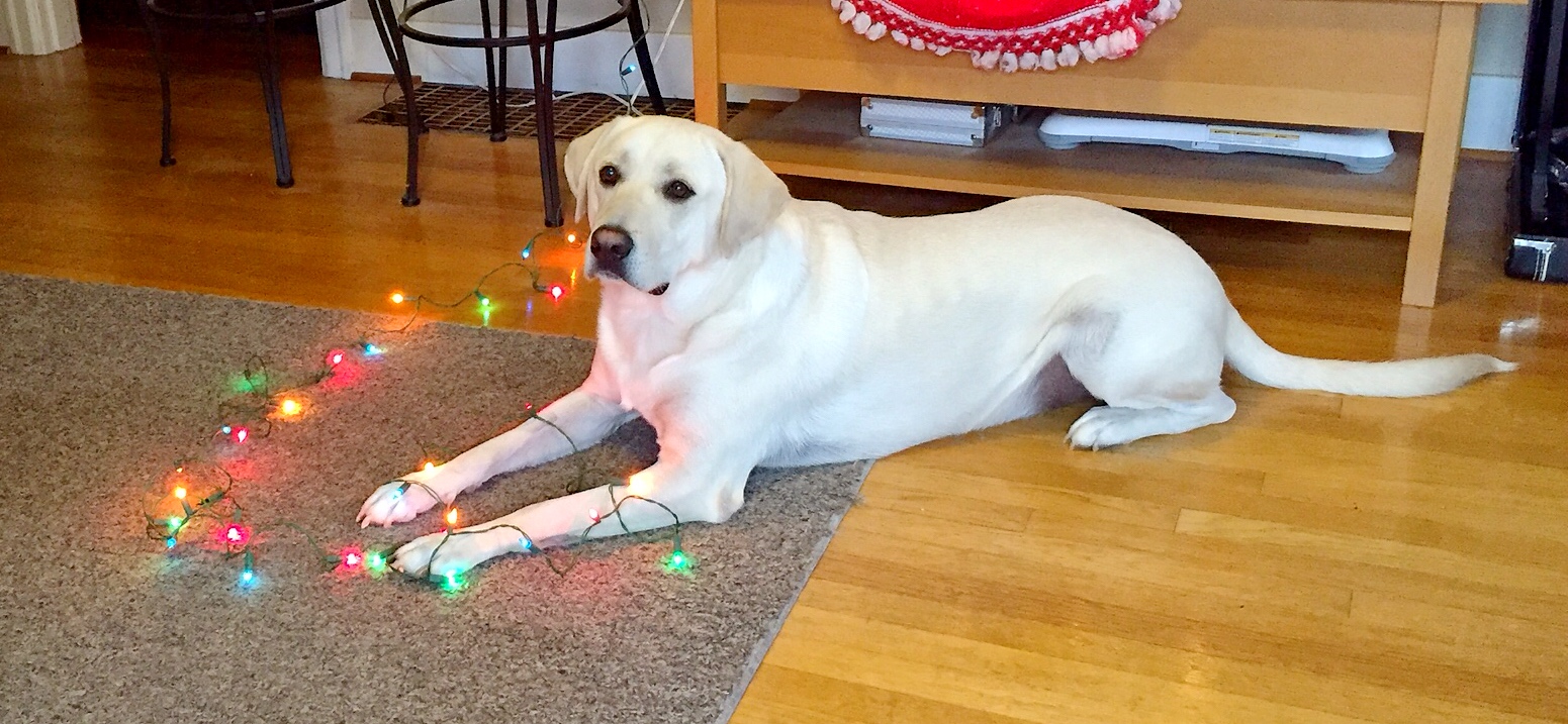 While decorating for the holidays I wanted to take some fun pictures of Xander and came up with the idea of draping lights around him and getting him to pose. But I knew he wasn’t going to just sit there and let those crazy blinky wires wrap around him unless he got to know them first.